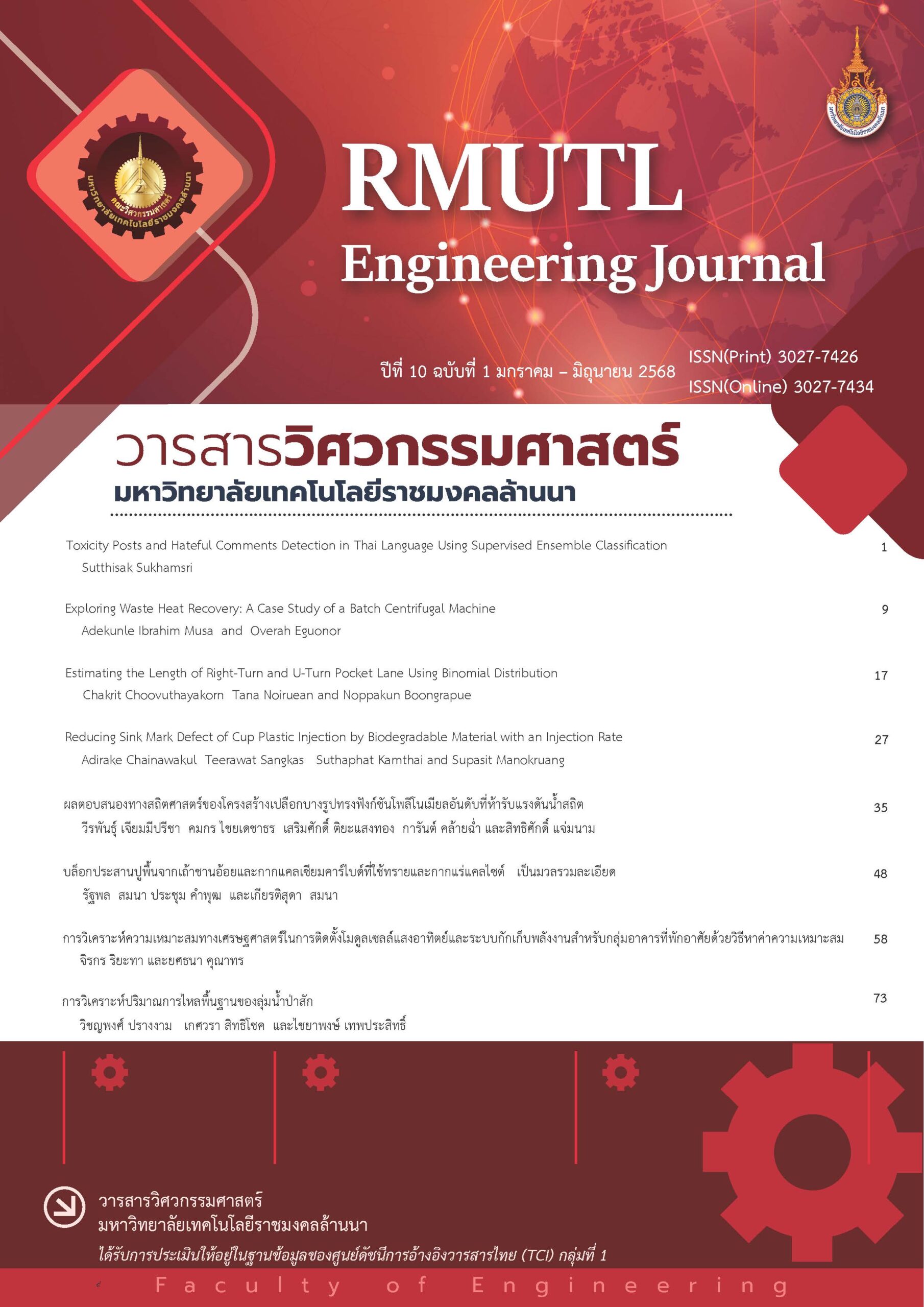วารสารวิศวกรรมศาสตร์ มหาวิทยาลัยเทคโนโลยีราชมงคลล้านนา