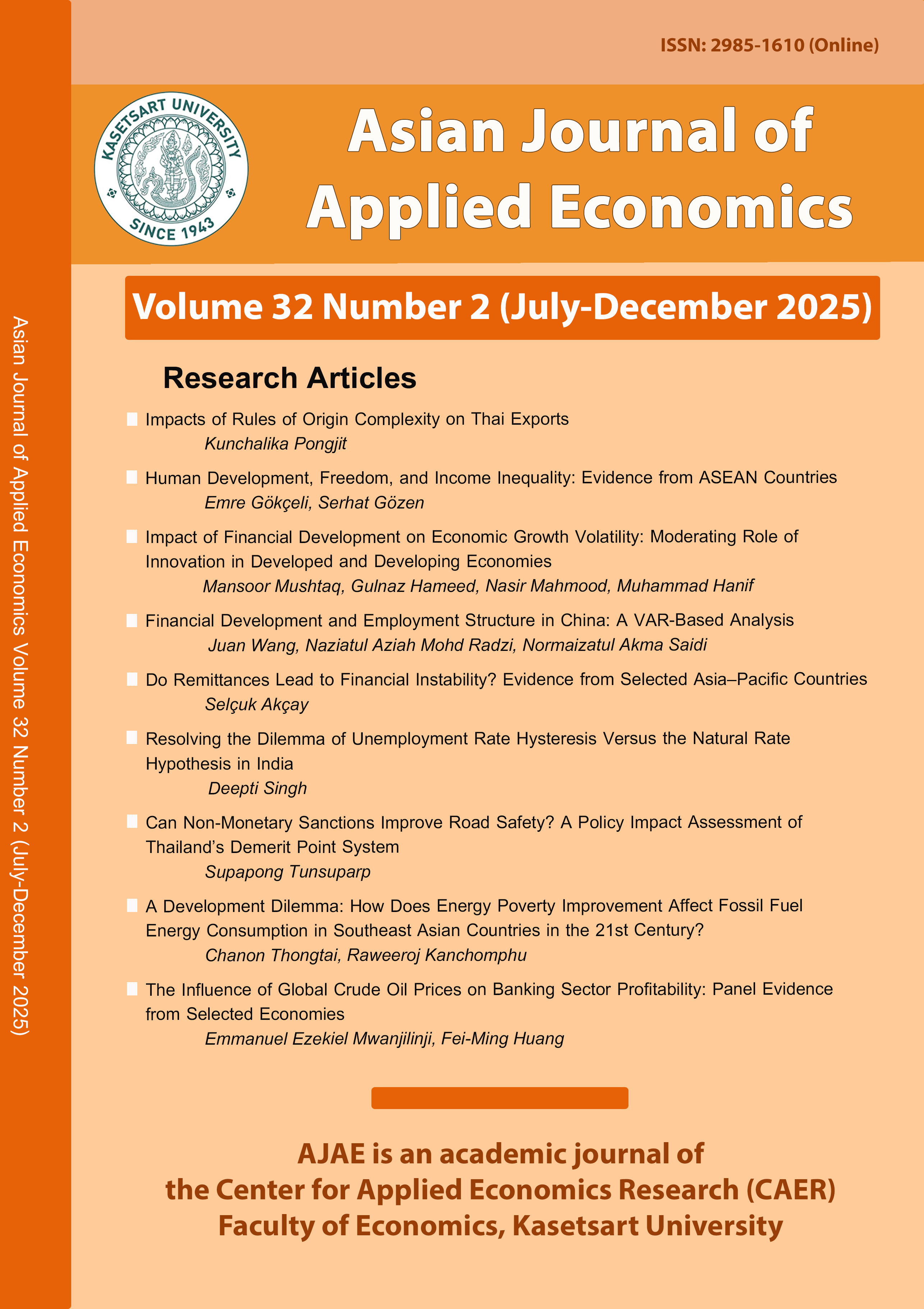 Is a double blind peer-reviewed journal devoted to the applications of economic theories, concepts and methodologies to analyze well-defined research issues. It encourages empirical analysis, simulation, prediction and forecasting research. While it is aimed at academics and policy makers interested in the Thai and Asian economies
