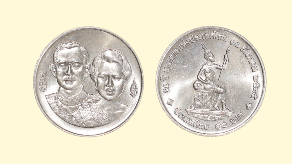 ธนาคารแห่งประเทศไทย ก่อตั้งขึ้นใน พ.ศ. 2485 ทำหน้าที่เป็นธนาคารกลางของประเทศท่ามกลางภาวะเศรษฐกิจผันผวนจากสงครามโลกครั้งที่ 2 โดยมี พระองค์เจ้าวิวัฒนไชย เป็นผู้ว่าการพระองค์แรก เหรียญที่ระลึกครบรอบ 50 ปี ธนาคารแห่งประเทศไทย พ.ศ. 2535 ปรากฏพระบรมฉายาลักษณ์พระพักตร์พระบาทสมเด็จพระปรมินทรมหาภูมิพลอดุลยเดช (รัชกาลที่ 9) และ สมเด็จพระนางเจ้าสิริกิติ์ พระบรมราชินีนาถ (พระอิสริยยศขณะนั้น) เป็นภาพคู่กัน