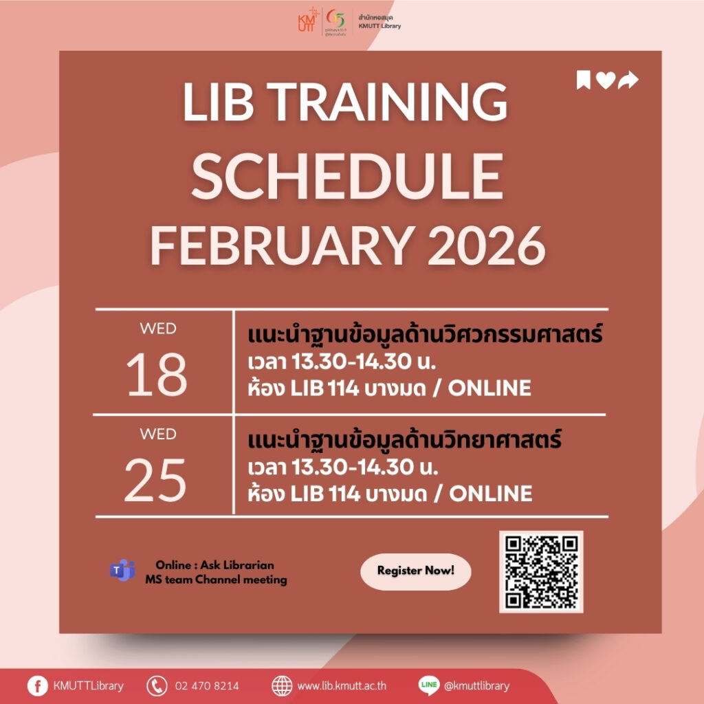 ขอเชิญเข้าร่วมการอบรมการใช้งานฐานข้อมูลออนไลน์ (LIB TRAINING) ประจำเดือนกุมภาพันธ์ 2569